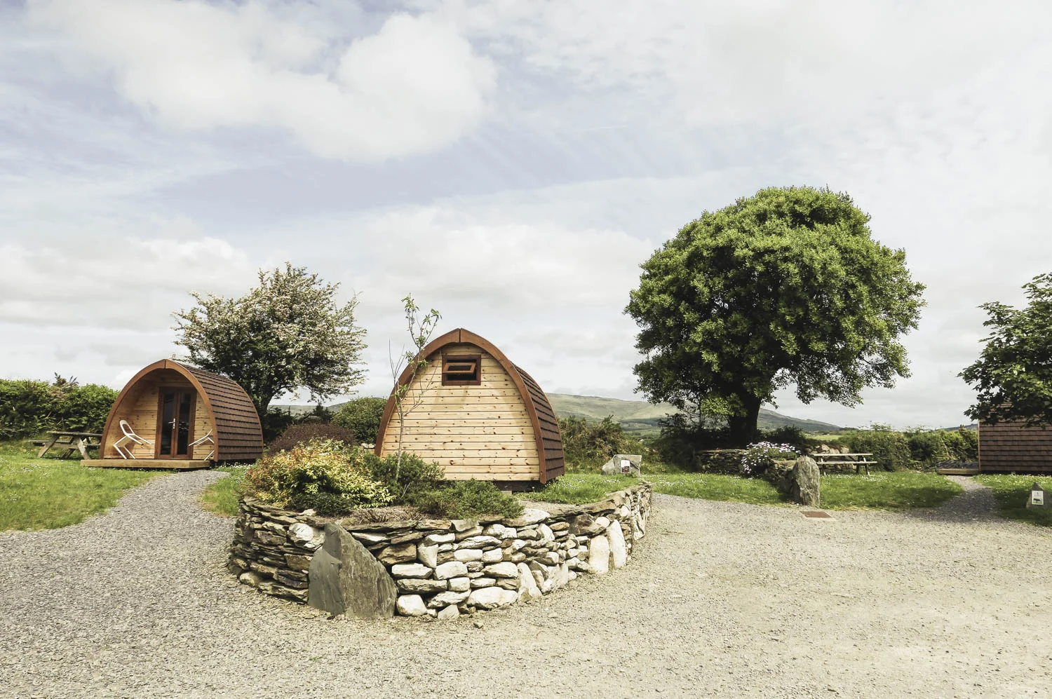 At this friendly family farm, you can experience glamping; the adventure of the outdoors, while still enjoying the comforts of heat, light, a decent bed and even wifi. Traditional camping (with a tent) can also be done. Children can enjoy roasting marshmallows on the campfire, play in the extensive play yard, play games in the stunning Pod Páirc building, pet the sweetest dog called Daisy and enjoy all of the farm animals that run freely around here. The seven wooden pods come in two different styles. The luxurious version features two comfy beds, a toilet with sink and a mini kitchen. Everything you need, for a perfect stay. I mean who wouldn't want to wake up with the sounds of lambs, ducks and birds… simply nature at its best!