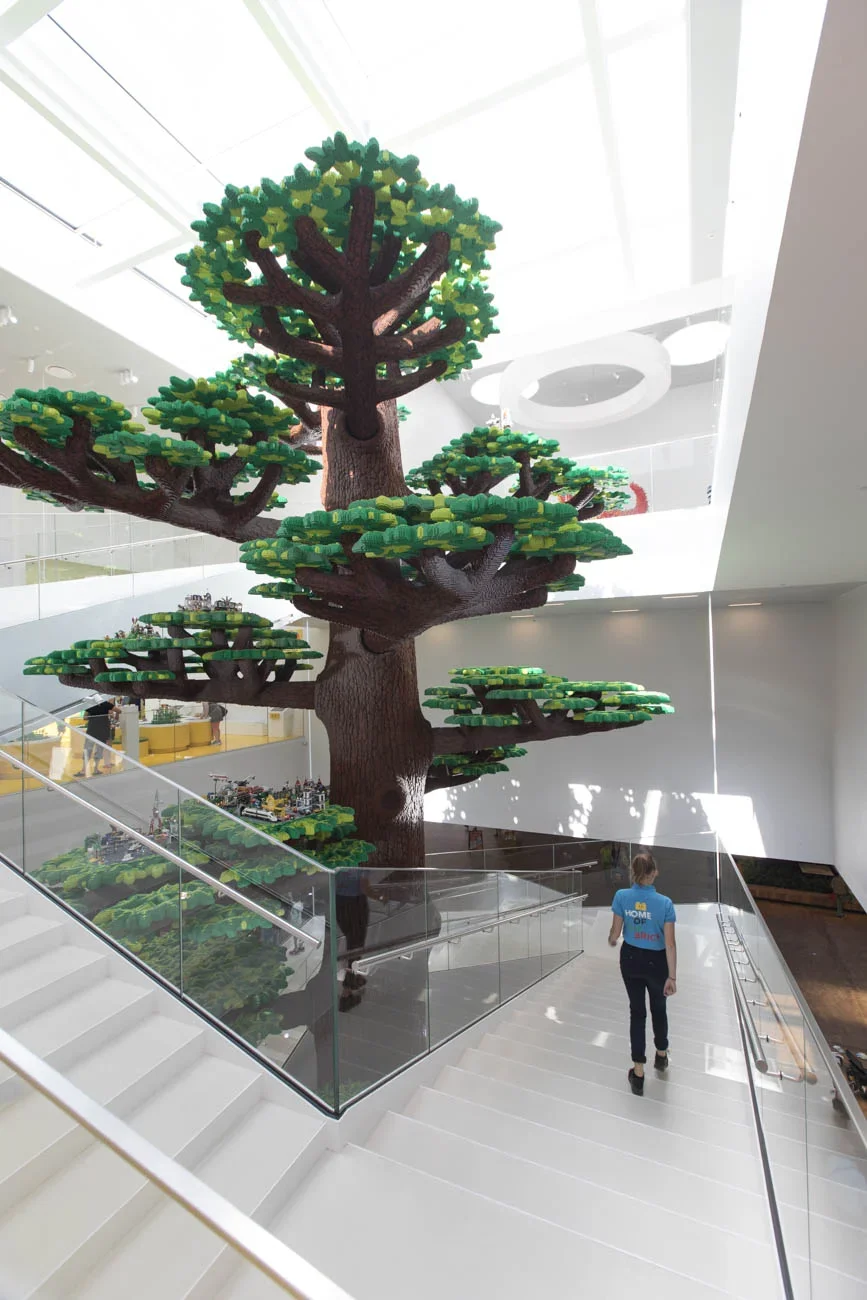 The tree stands as an integral part of the building, but originally there were other ideas and alternative models. In the end, It's great that they've chose the tree, as it resembles strength, roots and I suppose marks the foundation of the great company. It is a very unique LEGO model and was built all by hand, using over 6 million standard LEGO bricks and took around 24 hours to build.