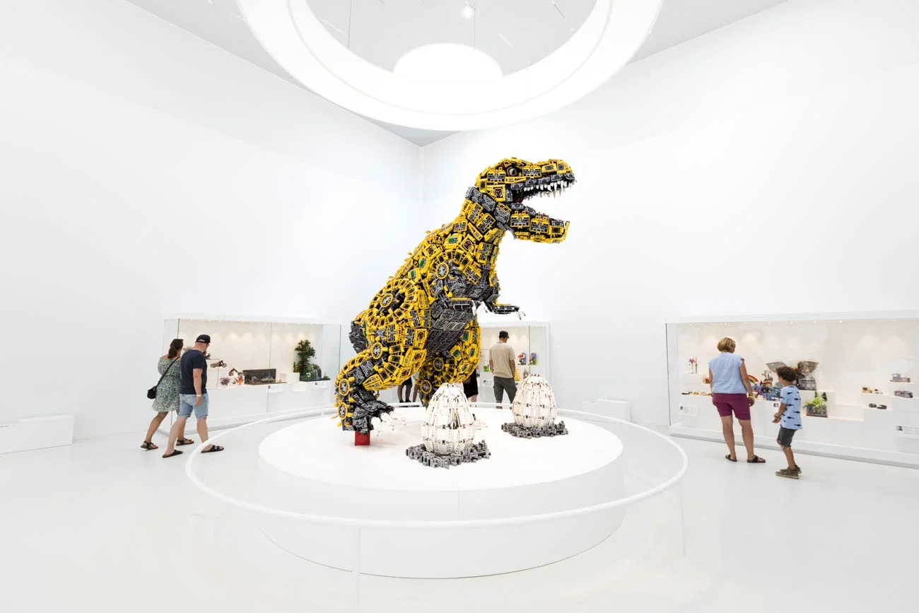 The amazing Technic dinosaur in the LEGO House Masterpiece Gallery. Over 700 panels with 18 unique designs were used to cover the dinosaur.
