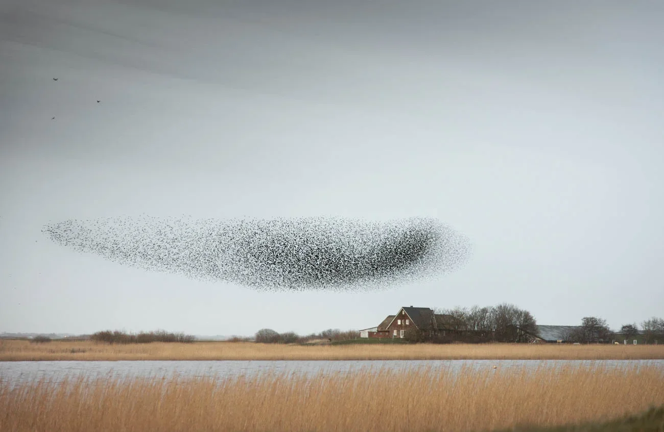 A flock of starlings, dancing magical patterns in the skies above the marches of Tønder. What a spectacular sight to see.