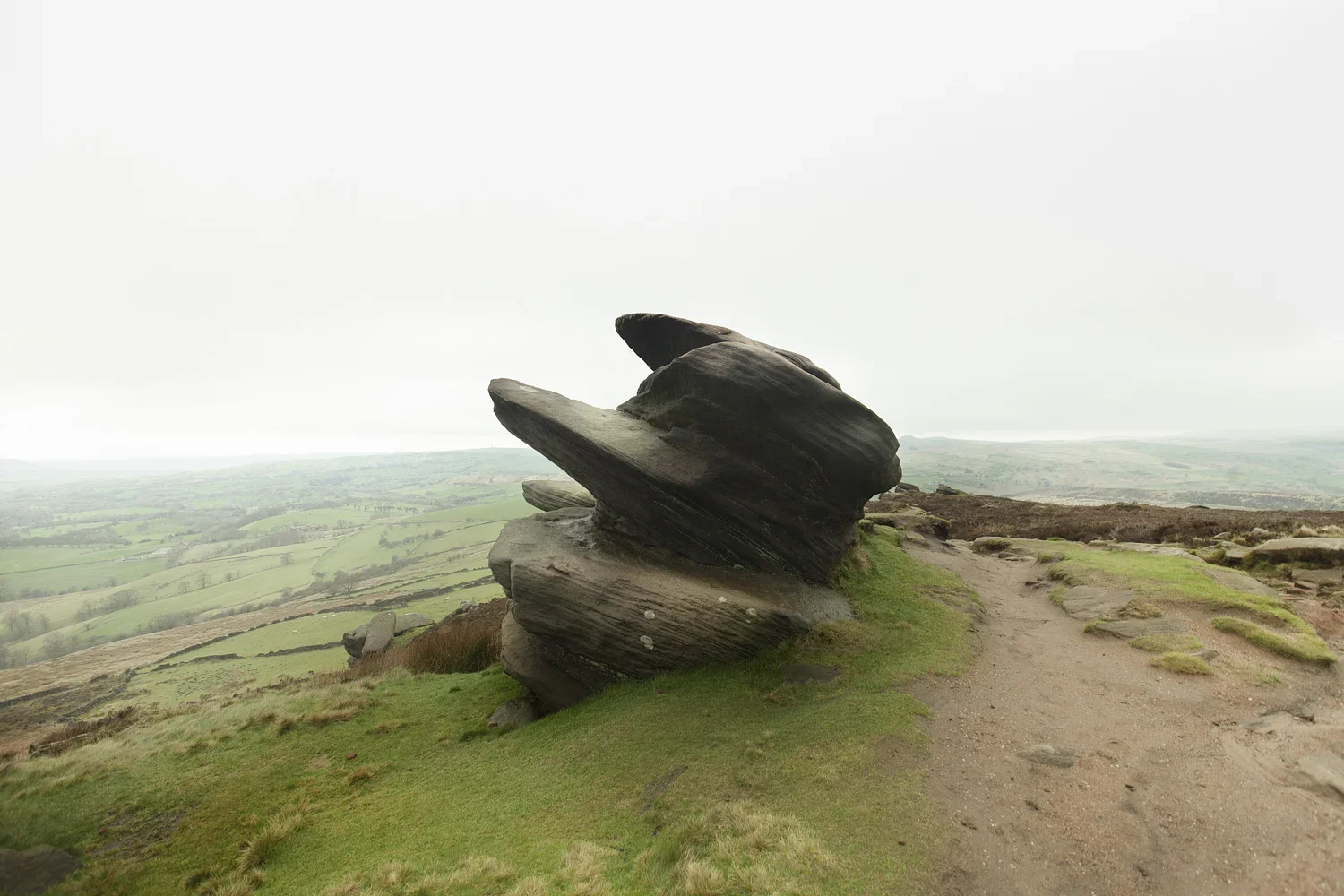 I find the rugged path and begin to walk up the path that eventually leads you to the Roaches summit and beyond. It is a good climb, one that even I can walk up, without moaning too much. The stunning views are all around and if you stop for a second and watch the clouds rush by, you are reminded just how high you are. Coming from Holland, I can tell you itโs quite a novelty.
