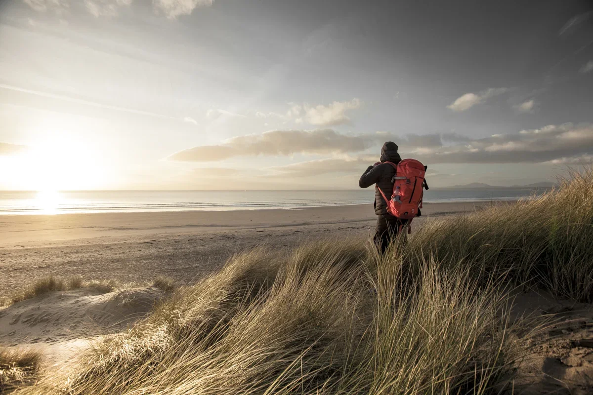 Duneland with a Snowdonia horizon in the background.