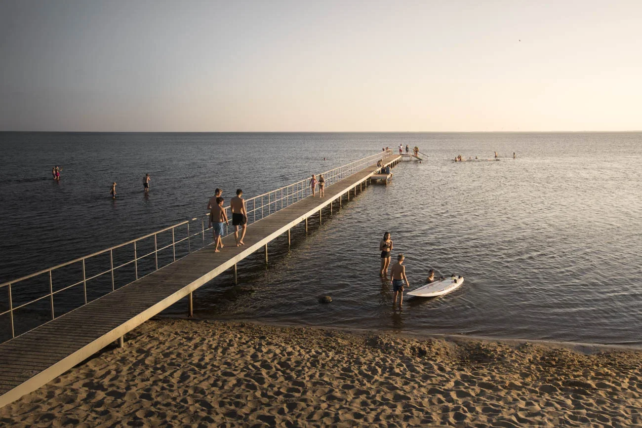People enjoying a summer evening at a jetty at Ringkøbing