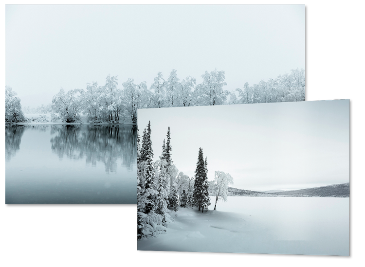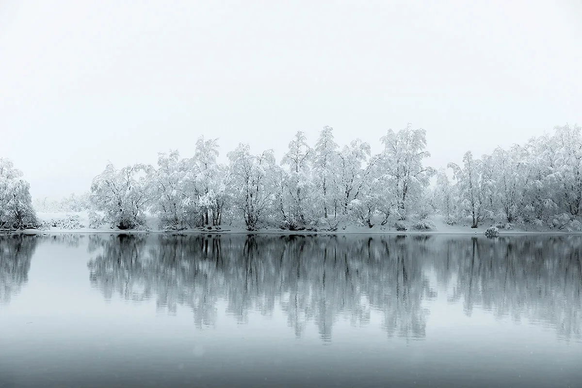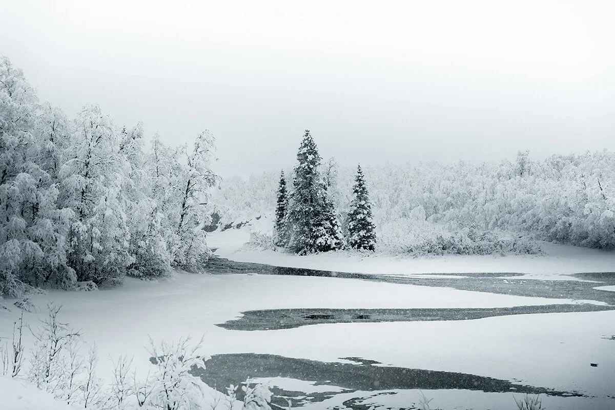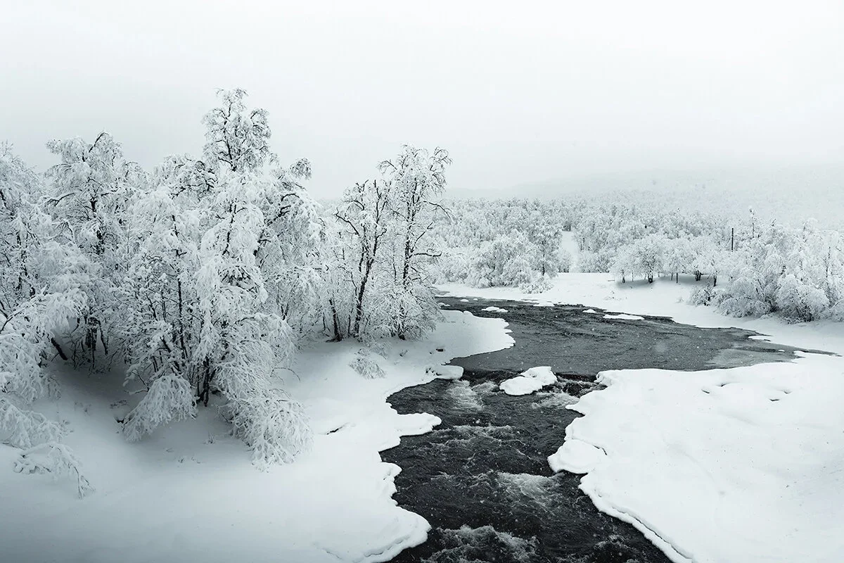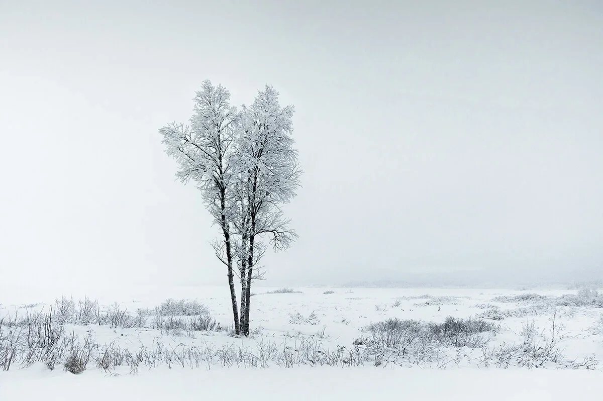 Frozen Silence was inspired by the natural beauty of Sweden and the area of Hemavan-Tärnaby. Captured during the bitterly cold month of December. Temperatures dropped below -10 degrees Celsius and snow regularly fell, adding to the already thick layers of purest white snow. These natural elements helped to create this magical, fairytale landscape, which can be seen through my latest imagery.